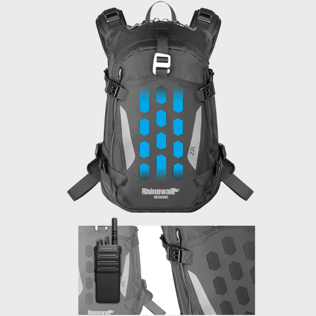23 litros de capacidad, diseño impermeable y comodidad asegurada con sistema de hidratación incluido.
