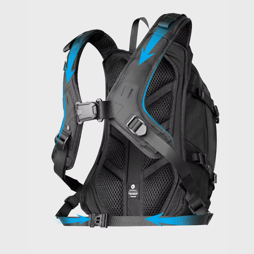 El sistema MOLLE frontal te permite añadir accesorios según la ruta. Más funcionalidad, menos complicaciones.